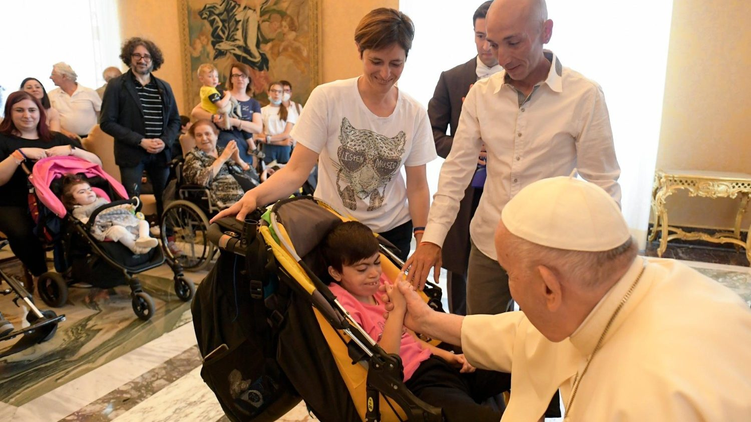 As emergências desses anos, ligadas ao acolhimento de refugiados que fogem de guerras ou mudanças climáticas, recordam como é importante encontrar alguém que estenda a mão, que ofereça um sorriso, que gaste tempo gratuitamente, que faz sentir em casa. Toda guerra marca uma rendição à capacidade humana de proteger. Uma negação do que está escrito nos compromissos solenes das Nações Unidas. Portanto, São Paulo VI, falando na ONU, proclamou: "Nunca mais a guerra!". Repitamos isso hoje diante do que está acontecendo na Ucrânia, e protejamos o sonho de paz das pessoas, o direito sagrado dos povos à paz.